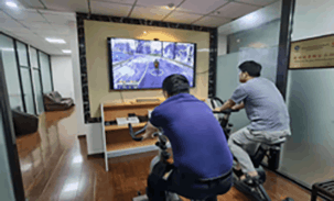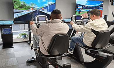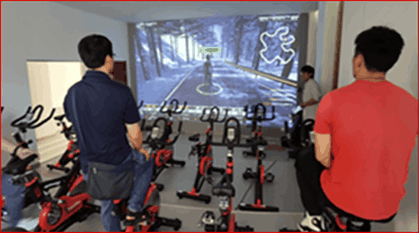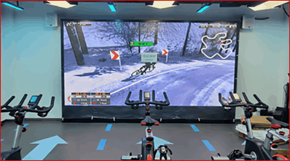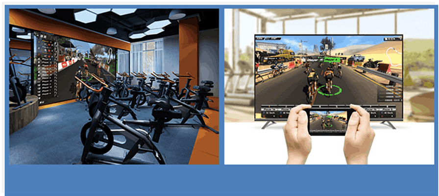 在智能动感单车系统中,您可以跟随教官进行专业的动感单车锻炼,也可以跟随视频进行预设课程的锻炼,更可以与团队成员来一场虚拟自行车赛,让汗水畅快挥发。