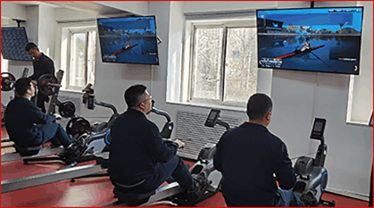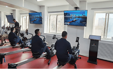 乐动智能划船机系统可将部队、武警中的多台普通划船机升级为智能器材。系统中的智能传感器采集划船机划桨的速度等数据,通过无线方式传输给PC上的多人划船软件。每套系统配备多个运动传感器,供多人在现场同时使用。可进行联网划船、赛艇比赛,融专业性和趣味性于一身。