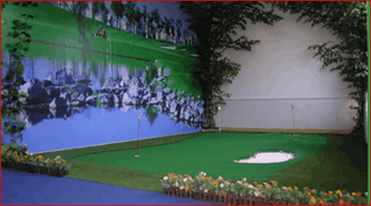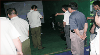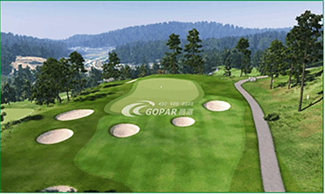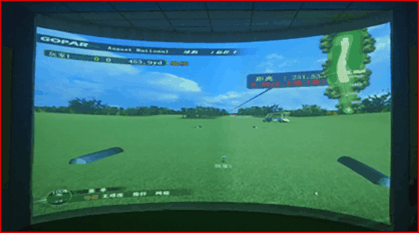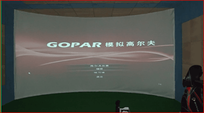 在GOPAR模拟高尔夫系统中,用户用真杆对着投影大屏幕击打真的高尔夫球,检测系统检测球的速度和方向,在屏幕上模拟球的飞行轨迹,如同在户外打高尔夫球一样,对提升高尔夫打球水平帮助很大。