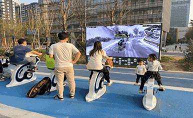 乐动户外智能骑行系统可将户外单车或健身车升级为既专业又有趣的户外智能器材。系统中的智能传感器采集单车骑行的速度等数据,通过无线方式传输给PC上的多人虚拟骑行软件。每套系统配备多个运动传感器,供多人在现场同时使用。