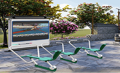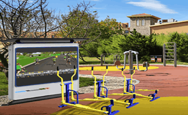 乐动户外智能跑步系统可将户外椭圆机或太空漫步机升级为既专业又有趣的户外智能器材。系统中的智能传感器采集器材跑步的速度等数据,通过无线方式传输给PC上的多人虚拟跑步软件。每套系统配备多个运动传感器,供多人在现场同时使用。