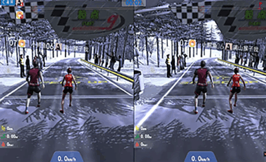 多人分别在多台跑步机上,面对一个大屏幕赛跑,非常适合团队赛跑和体能拓展,跑步锻炼和游戏比赛融合在一起,专业性、趣味性兼而有之。还能边跑步边浏览世界各地美景,“跑”遍全世界。