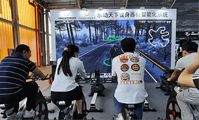 在智能健身车系统中,您可以跟随教官进行专业的健身车锻炼,也可以跟随视频进行预设课程的锻炼,更可以与团队成员来一场虚拟自行车赛,让汗水畅快挥发。