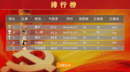 运动结束后进行活动、数智竞技比赛成绩和党建培训答题正确率排名,并颁发奖品,提高活动比赛和学习积极性