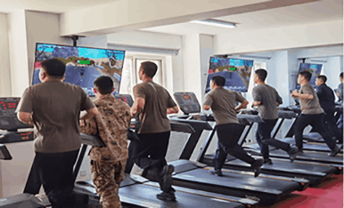 在数智体育系统旗舰版中包含了红色骑行、红色划船和红色跑步等红色体育竞技单元,让官兵们化身红军战士,身临其境在枪林弹雨中用最短的时间完成骑车送信,划船过河或跑步行军等任务,感受革命战争烽火和烈士精神,实现了体能训练、运动比赛和红色历史教育的完美结合。
