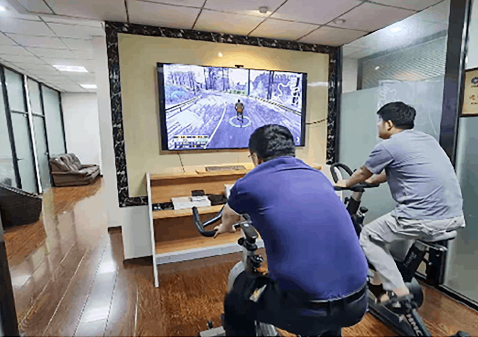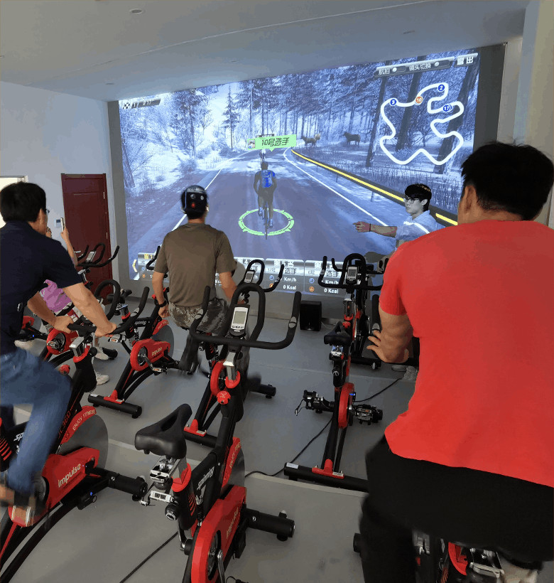 基于健身房现有的动感单车或健身车,配备电视或LED大屏和智能单车系统,可进行联网比赛和党建培训。