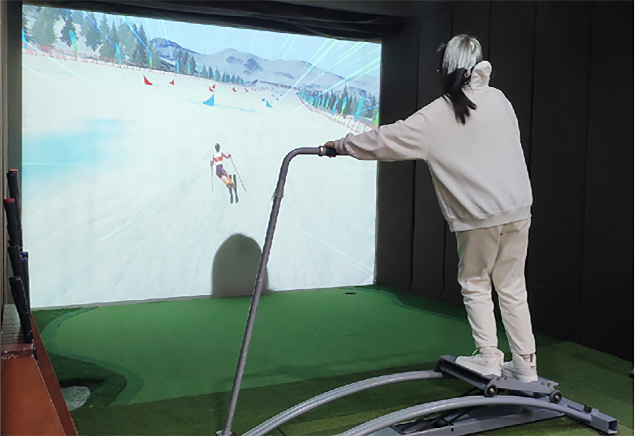 乐动单板滑雪模拟系统基于与滑雪单板近似的单板训练台开发,用户通过操控单板训练台的方向和角度来控制虚拟雪场中单板滑雪的方向和角度。